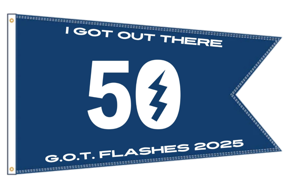The Lightning Class is pleased and proud to honor Ken with this Burgee for taking an older boat, bringing it back to life, and using it more than 50 times to promote the joys of owning and sailing a Lightning. In a year when people are actively campaigning their boats across the globe in Local, Regional, National, and international competition for the right to fly the G.O.T.-Flashes 50 Sail Burgee, it is wonderful that the first person to receive one hails from our classic boat contingent.