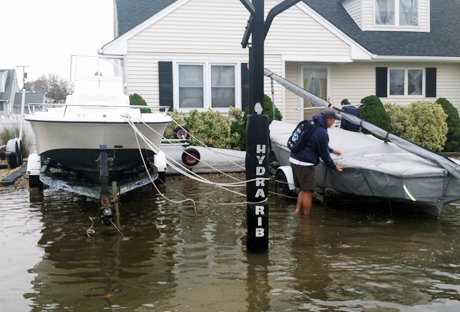 Monmouth Boat Club - Fleet 70: Hurricane Sandy certainly devastated Monmouth Boat Club (Red Bank, NJ). The Navesink River rose 8 to 11 feet, washing away most of our docks and boats stored in the yard. One stack of three docks remains in the yard, one is behind the ice boat clubhouse which shares the same parking lot, one is on top of the marina's dock next door, and many floated across the river as did most of our boats.